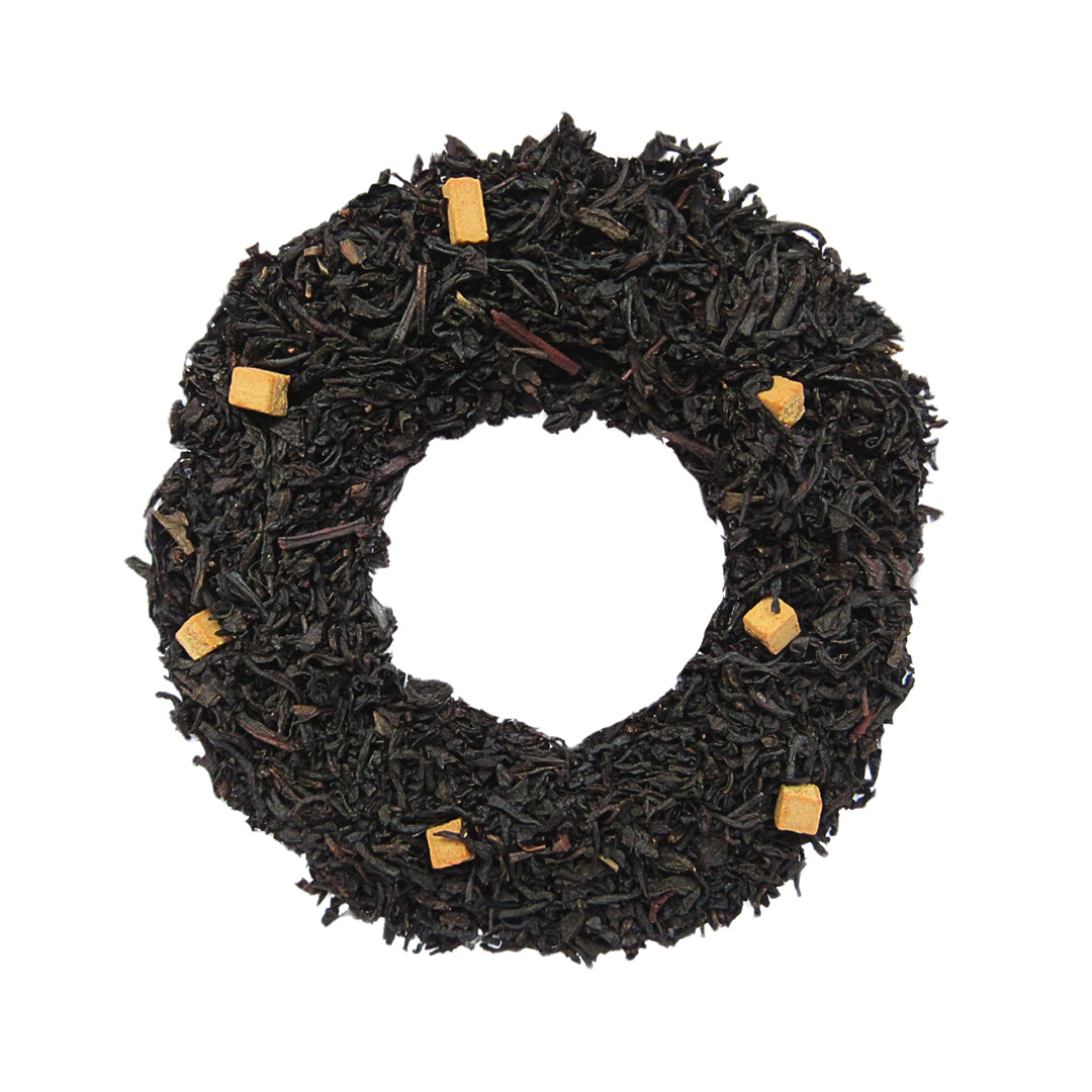 The robust flavour of black tea provides a strong and malty base for the blend, perfectly complementing the smooth and velvety notes of caramel.