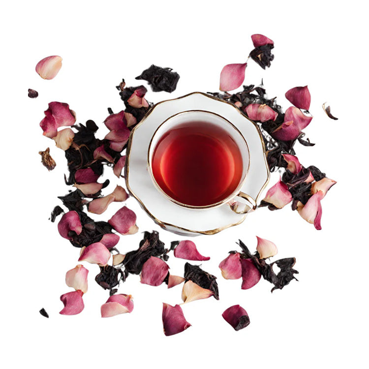 Ceylon & Rose tea is an enchanting blend that marries the bold, brisk notes of Ceylon black tea with the delicate, floral aroma of rose petals.