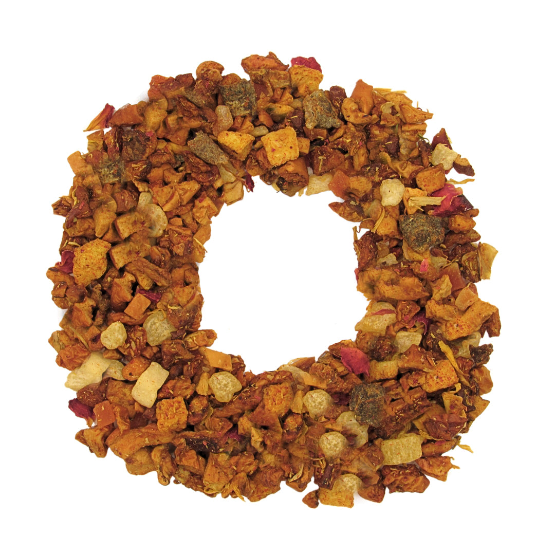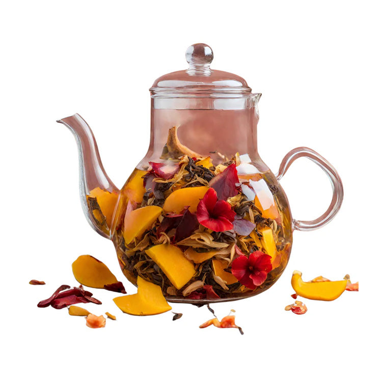 Precious Peach is a tantalising fruit infusion that weaves together a harmonious blend of apple pieces, hibiscus petals, mango pieces, papaya pieces, sunflower petals, and a thoughtfully crafted flavouring. This exquisite composition results in a tea that is both visually stunning and a true celebration of fruity indulgence.