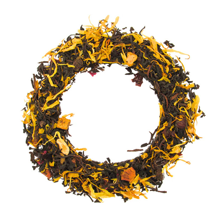 Black Tea, Strawberry pieces, Raspberry pieces, Blackcurrants, Vanilla Pieces, Marigold, Natural Flavouring.