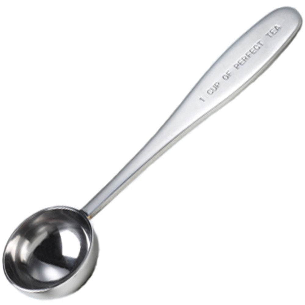 A stainless steel scoop measure perfect for a cup of black or green tea for one. An easy way to get the most out of your batch of loose leaf tea.