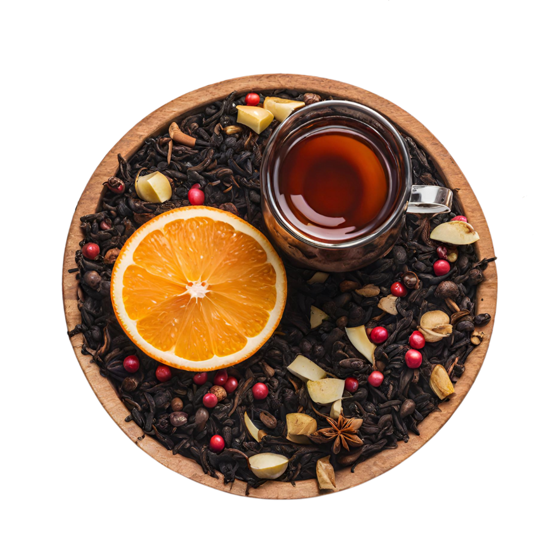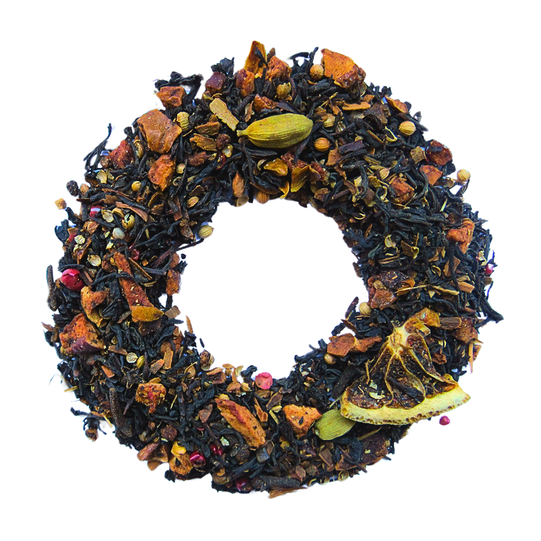 The rich black tea base provides depth and warmth, perfectly complemented by a medley of festive spices, including cinnamon, cardamom, and cloves. Sweet apple notes enhance the natural citrus brightness, while a touch of peppercorn adds a gentle, warming finish.