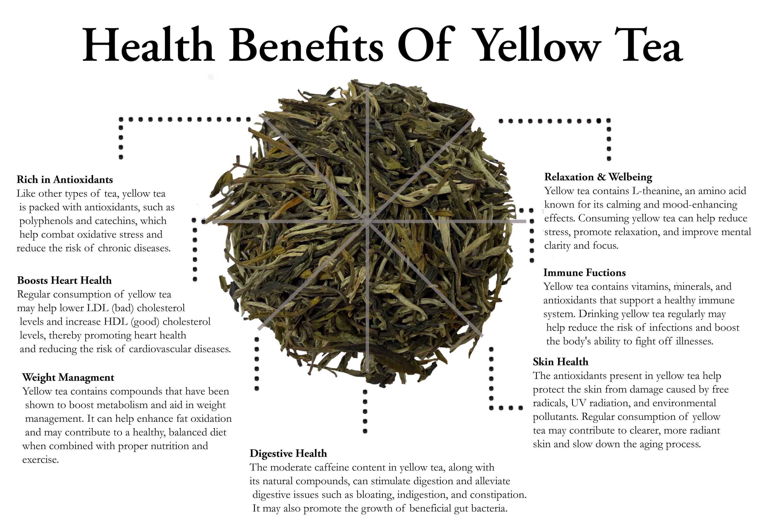 Like other teas, Huang Ya Yellow Tips contains antioxidants and polyphenols that may offer various health benefits. The unique processing of yellow tea is believed by some to contribute to its potential health properties.