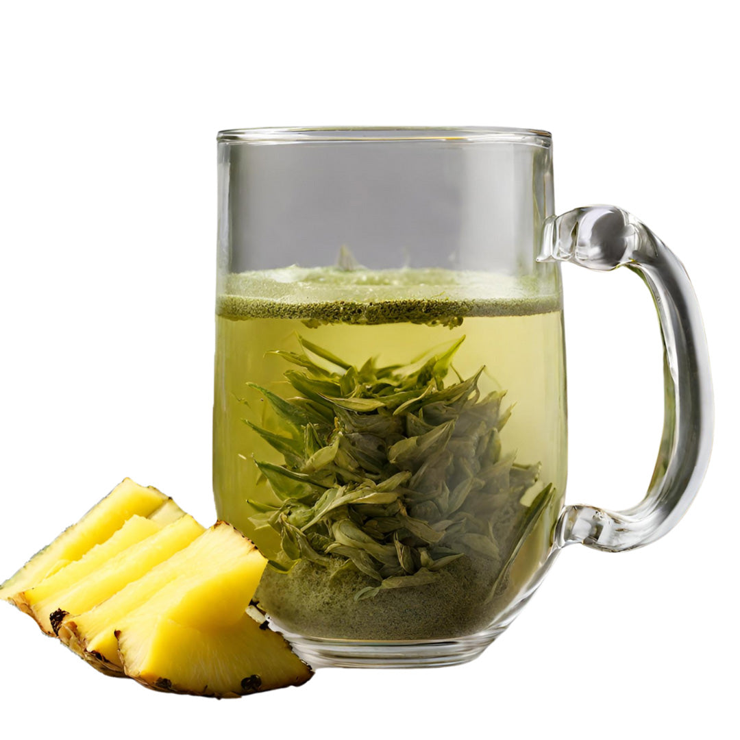 With each sip, you'll experience the crisp and grassy undertones of Sencha green tea, perfectly complemented by the juicy sweetness of pineapple pieces.