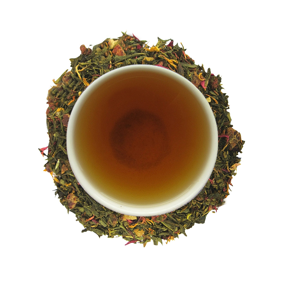 Our Sencha Aloe Vera green tea blend is a refreshing fusion of immune-boosting aloe vera and the vibrant sweetness of pineapple pieces, creating a naturally sweet and invigorating experience.